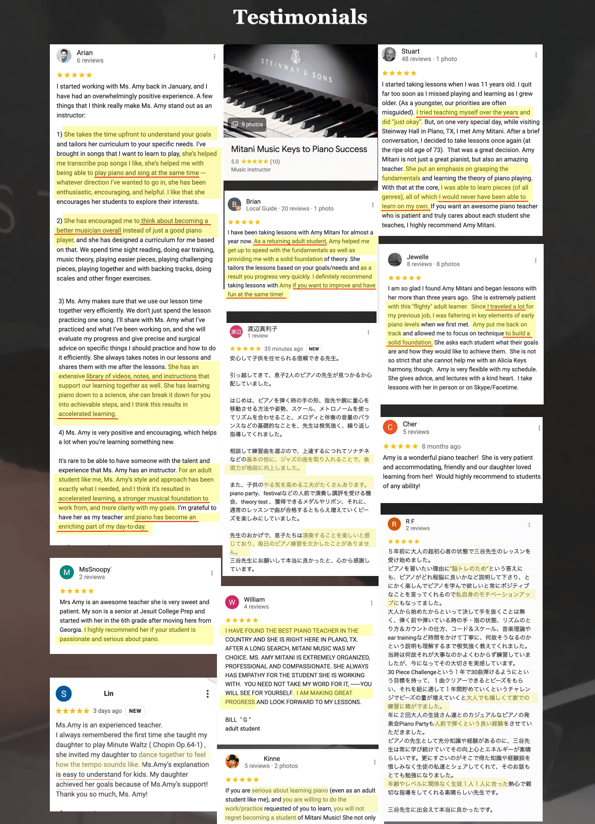 "Learning with Amy has been only an enhancement. You can learn not only Classical pieces but contemporary ones as well. "